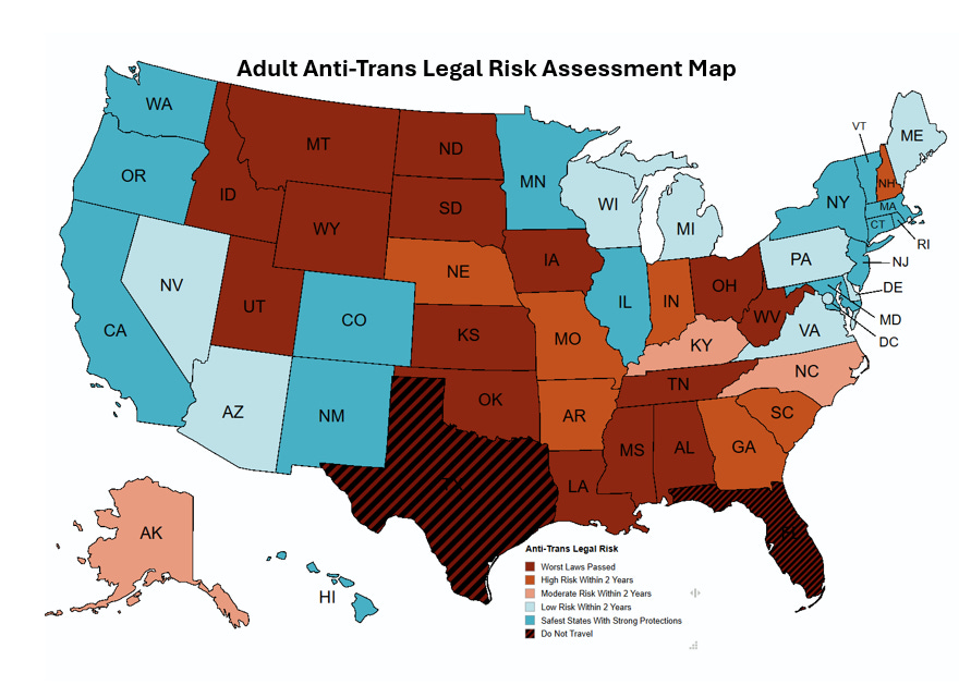 The situation has deteriorated for transgender youth around the country, with many clinics shuttering and state AGs unwilling to enforce law. For adults, some states see higher risk.
