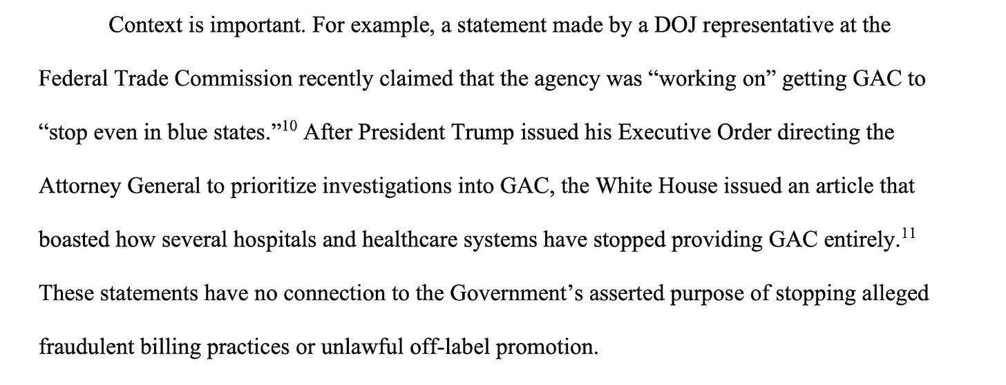 But Joun denounced what he painted as a politically, rather than legally, motivated attack. The federal government failed to present even “an iota of suspicion” that BCH is actually engaging in fraudulent or off-label billing practices, Joun writes. “[I]t cannot use its subpoena power to go on a fishing expedition.”