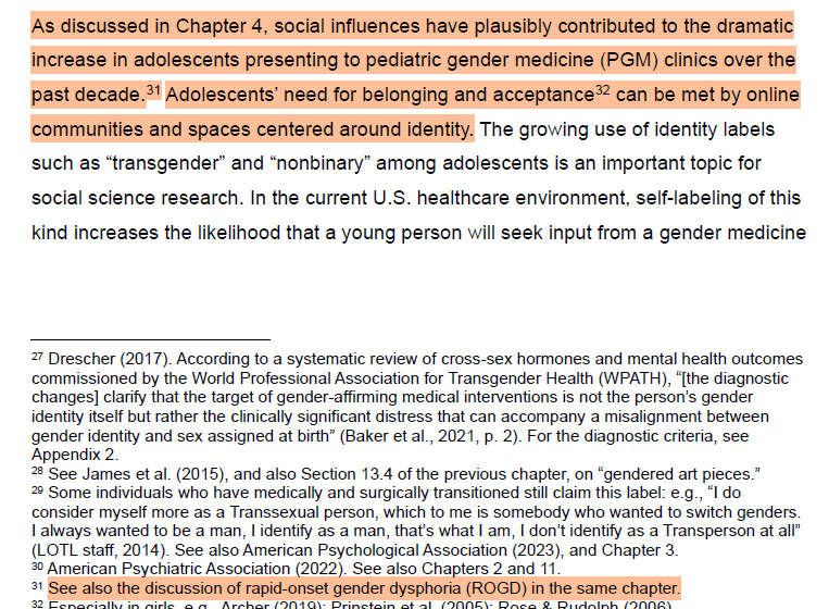 In several instances, the report pushes "Rapid Onset Gender Dysphoria" and "social contagion" as potential reasons for the apparent increase in transgender individuals in recent years, raising concerns that these individuals will detransition. A letter from over 60 psychological organizations, the coalition for the Advancement & Application of Psychological Science calls for the elimination of the term, stating, “There are no sound empirical studies of ROGD” and “there is no evidence that ROGD aligns with the lived experiences of transgender children and adolescents.”
