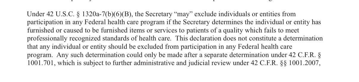 If the new HHS initiative advances, it could become a formal notice of exclusion—a designation often called the “death penalty” for health care providers, usually reserved for institutions found to have committed serious crimes, such as Medicaid fraud or the illegal distribution of controlled substances.