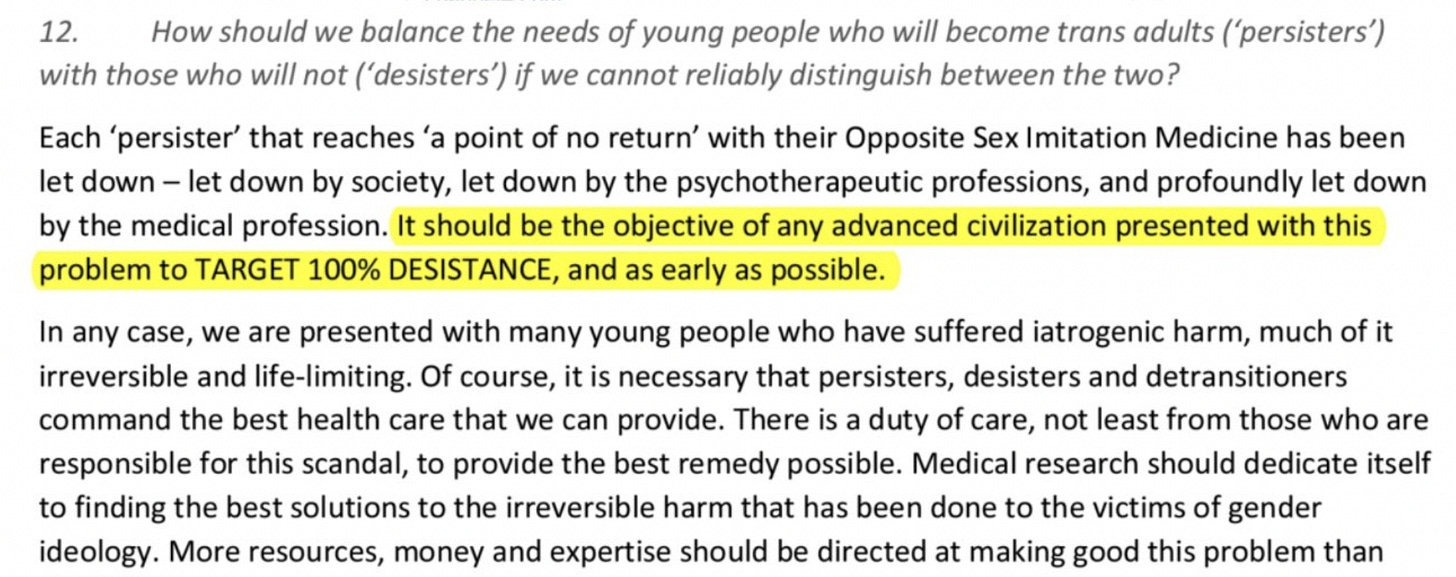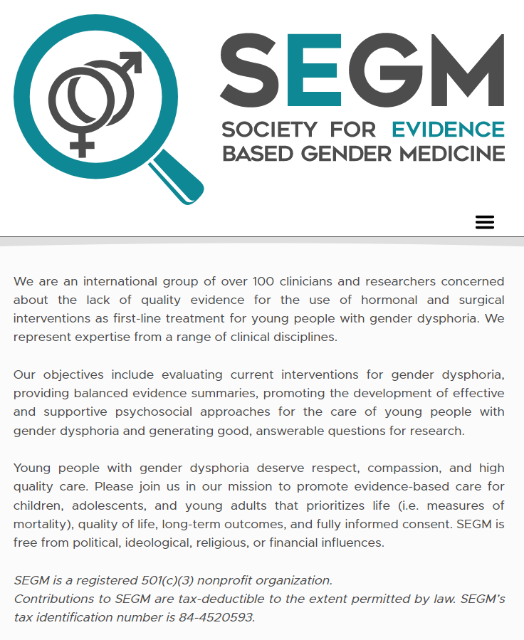 There are entire organizations that center on transmedicalism, claiming to be "for advancing transgender care," such as Genspect and SEGM. Just look at SEGM's mission statement: