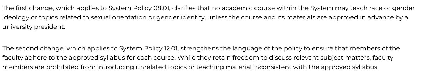 The Board of Regents voted to pass the policy last week, branded as a more liberal iteration of the original proposal that banned anything that might even “teach” these things.