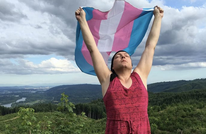 Sherrie James. Died of stomach cancer some 6 years back, had never told her father. She found welcome and friendship at our church, though. Even one who had dead-named her in life, used her chosen name after her death. One small step. I'll not forget her grace.