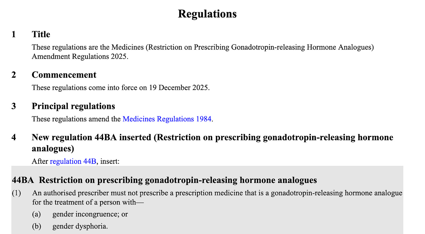 On Dec. 1, 2025, the Professional Association for Transgender Health Aotearoa (PATHA) filed for an emergency injunction to overturn the provision. (Aotearoa is a pre-colonial name, derived from indigenous Māori peoples, for the land otherwise known as New Zealand.)