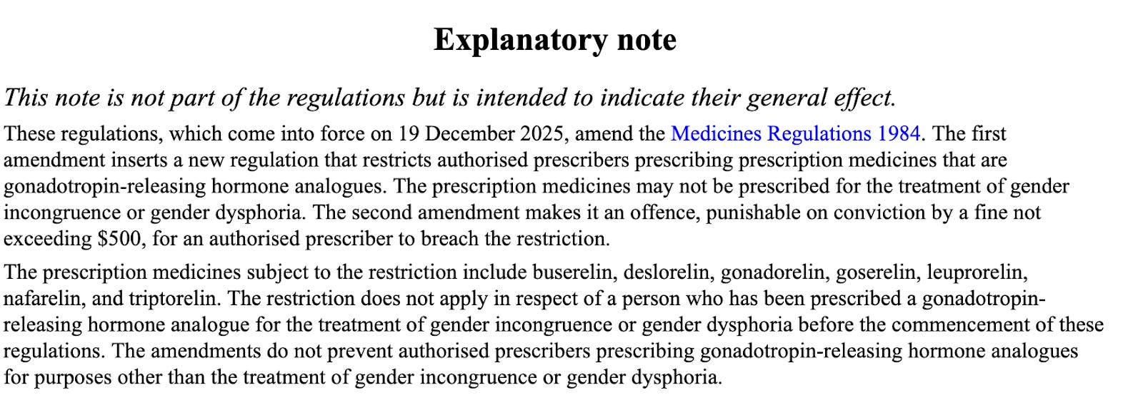 Although an explanatory note tacked on to the end of the regulation clarifies that the amendments should not inhibit prescribing puberty blockers “for purposes other than the treatment of gender incongruence or gender dysphoria,” it also states that “this note is not part of the regulations but is intended to indicate their general effect.”